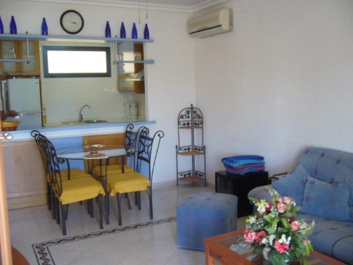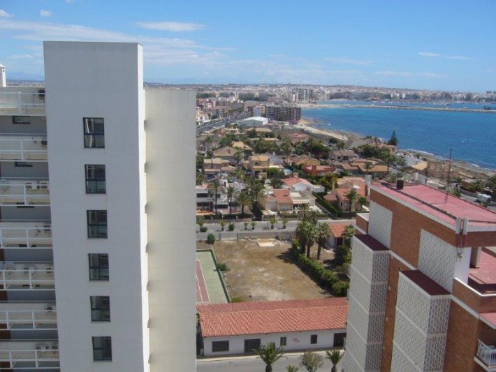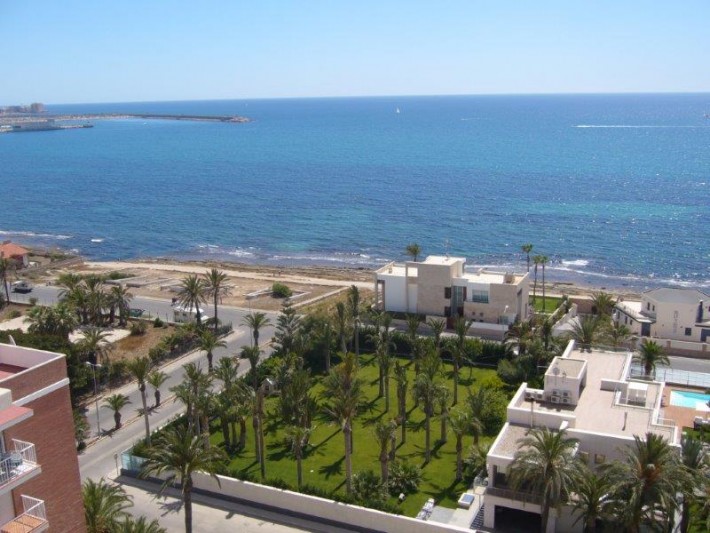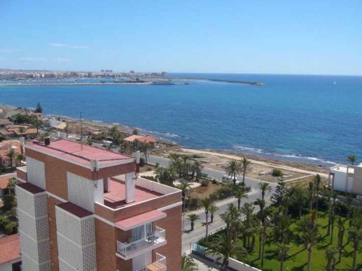 The apartment is in the prestigious urbanization of La Veleta Torrevieja, Costa Blanca, Alicante Neat house territory with a swimming pool Seaview South orientation 2000 built year The area of 115 m2 2 Bedrooms 2 Bathrooms Terrace and balcony Fitted and equipped kitchen For sale with furniture There is air conditioning Walking distance to the beach infrastructure area Price 150 000 Euro