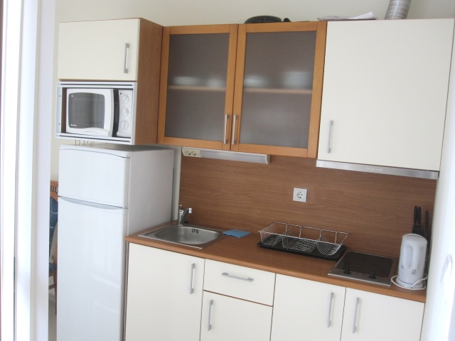 It consists of: living room with kitchenette, bathroom with toilet, terrace with views of the complex and swimming pool . The kitchen has a built-in stove, fridge,extractor.The apartment has air conditioning.