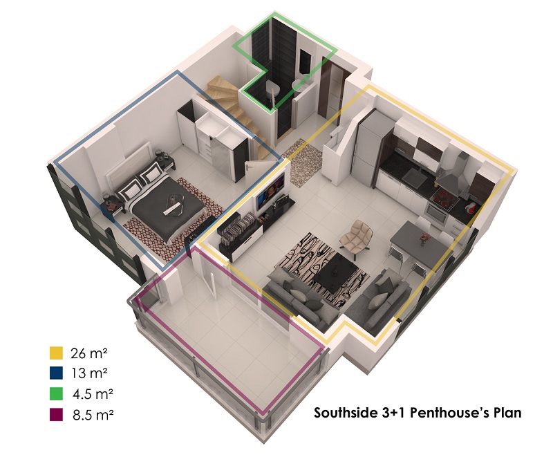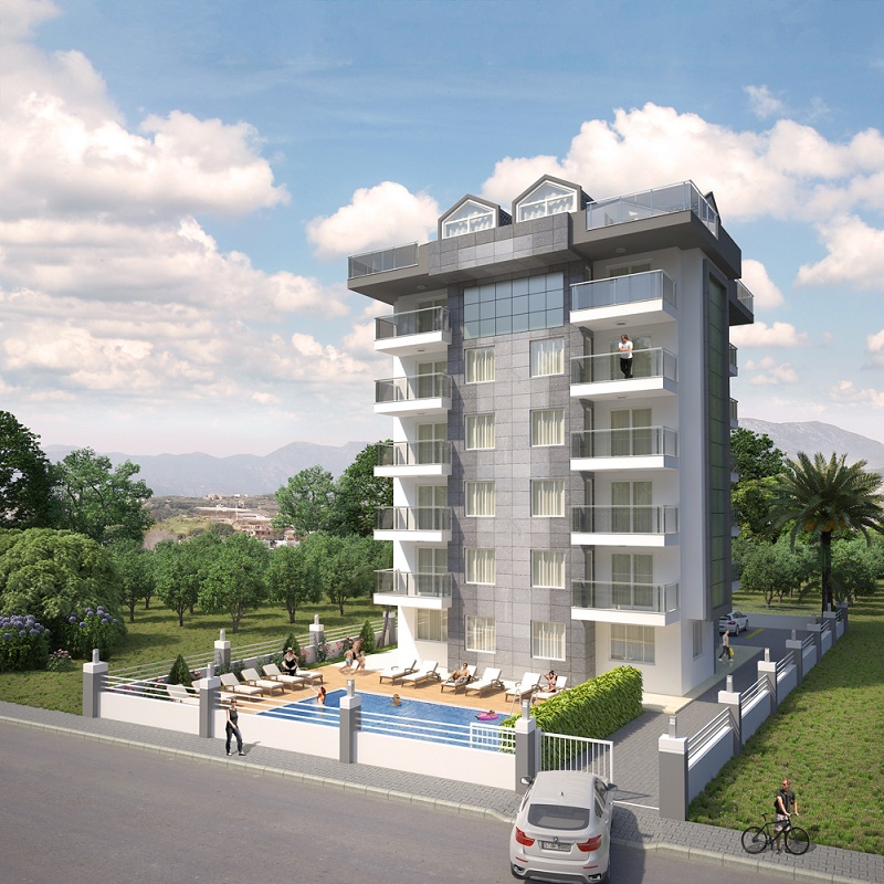 Our Project is in the Kestel district, east of Alanya and it is on approximately 1 decare land. It consists of one block. Our project which includes 10 1+1, and 5 3+1 duplex (15 apartments in total) is one of the favorite projects of our Alanya, and it draws attention and is taken as an example. In our project evaluated and developed by us with architects, designers and engineers who are specialists in their fields, the needs and the comfort of our customers are emphasized to the maximum extent and the swimming pool, the sport center, the sauna and the parking lot included in the project are provided to serve you.