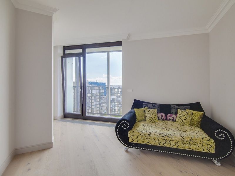 Квартира на 14 этаже, общей площадью 155 м2, жилой 133,8 м2, состоит из 3 спальных и 2 ванных комнат, просторной гостиной с кухонной зоной, хозяйственного помещения, террасы 21,5 м2. Так же в стоимость квартиры входит кладовая в подвале 5 м2 и 2 места на парковке.