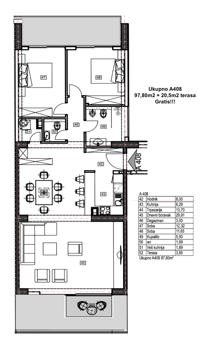 2-bedroom apartment number A408 in an exclusive multi-complex «Porto Budva»