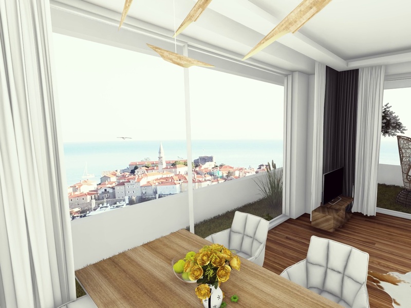 Apartment with direct sea view and the castle’s of Оld town. Apartment with two bedrooms and two bathrooms, total area of 50.42 sq.m + 9,75 m2 terrace with landscaping as a gift!