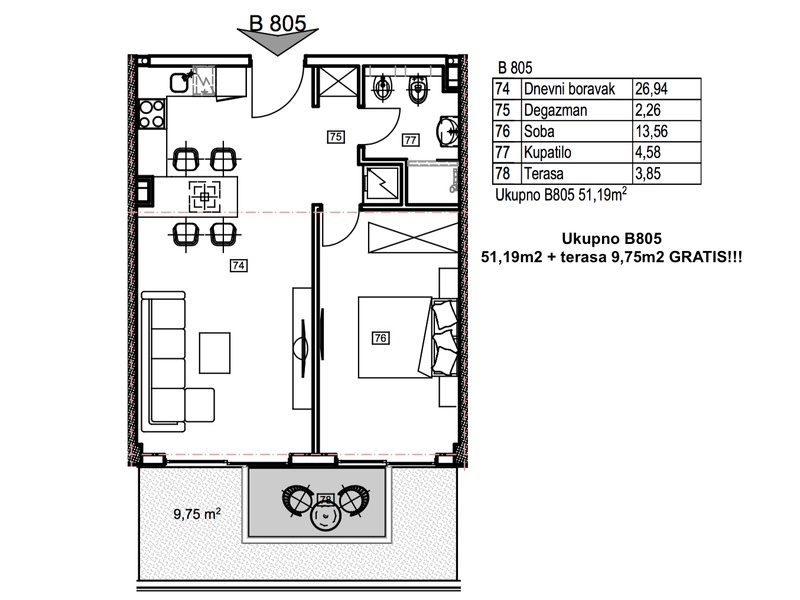 1-bedroom apartment number B805 in an exclusive multi-complex «Porto Budva» with a shopping center of 8000 sq.m and a SPA-center 3500 sq.m with a wide range of services, with the medical center, with indoor and outdoor pools!