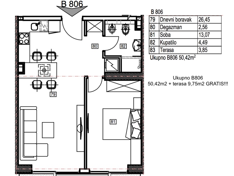 1-bedroom apartment number B806 in an exclusive multi-complex «Porto Budva» with a shopping center of 8000 sq.m and a SPA-center 3500 sq.m with a wide range of services, with the medical center, with indoor and outdoor pools!
