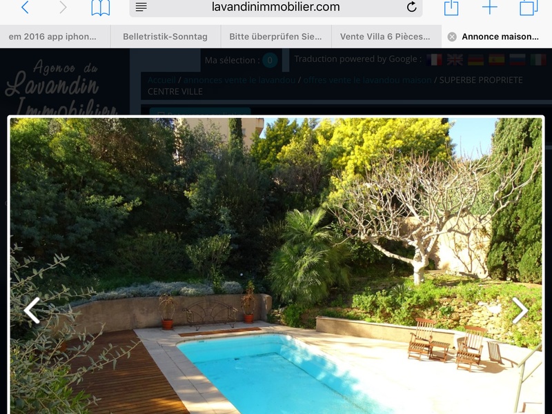 Große provencalische Villa mit Meerblick, ruhige Lage, 300 m zum Stadtzentrum, 400 m zum Strand. Erbaut 1972 auf einem Terrain von 2000 qm, Wohnfläche 250 qm (+ Garage + Terrasse), Schwimmbad ( 9x4 m) und angelegter Garten. 4 Schlafzimmer, 3 Bäder, großes Wohnzimmer mit Kamin, großzügiges Esszimmer, abgeschlossene Küche, ein Gäste-WC, Keller und Waschküche, 4 Terrassen.