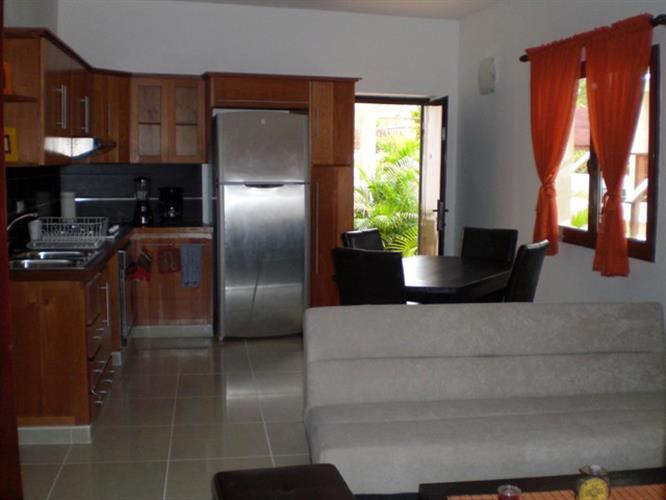 his two bedroom modern condo in Cabarete is located in a gated community that is a very short walk to the center of town and lovely sandy beach with many restaurants and bars.