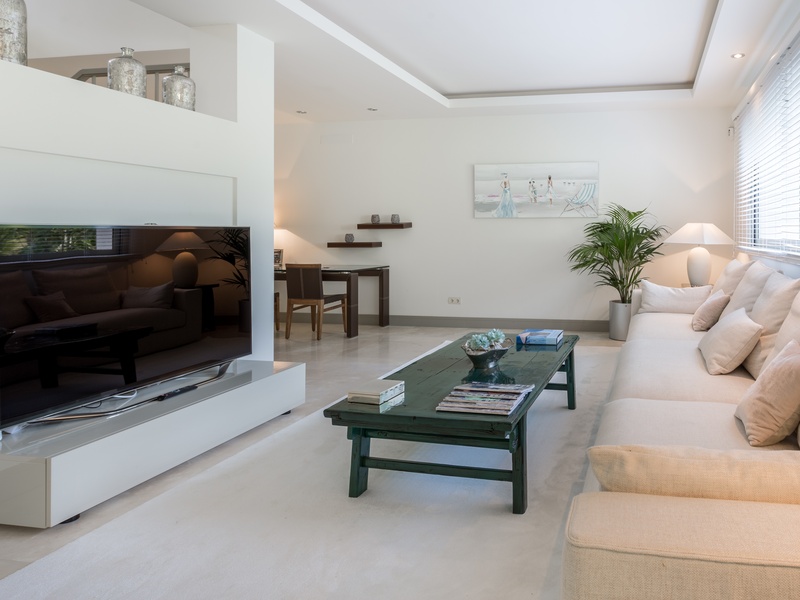 Excellent villa in Los Monteros based on white Spanish modern style with ceramic tile Arabic roof. Very close to the sea, frontline golf. Entrance hall, five bedrooms with en suite bathrooms, guest toilet, main hall, lounge, dining room, living room, kitchen, porch, all of them very large. Onyx fireplace lounge and dining room. Aged marble flooring in porch and gardens. Marble floors on ground and first floors except in bedrooms. 4 car garage. Room facilities. Storage rooms of over 100 m2. Oversized pool with waterfall emerald tile, lighting color. Ideal for golf enthusiasts. Very calm tranquil area with direct access to the golf courses and close to the sea. Rental 10.000€ weekly.