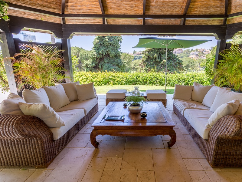 Stylish villa with wooden roof of Canada, located in Golf Rio Real. Plot in Gated Community with communal areas and gardens. Entrance hall, 6 bedrooms, 6 bathrooms, living room, dining room, several rest rooms, room and dressing room to the master bedroom, kitchen, 3 porches, all large, porch table tennis, lounge with pool table (snooker), garage for more than 5 cars. Oversized pool with colored lighting. Additional apartment with living room, bathroom, kitchen and bedroom with separate entrance.