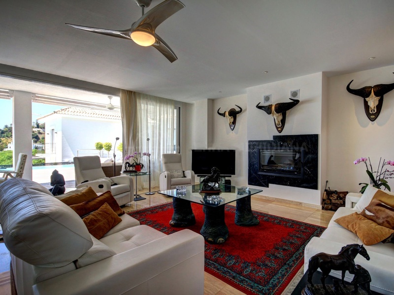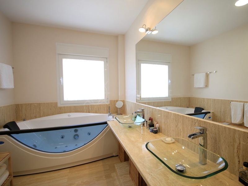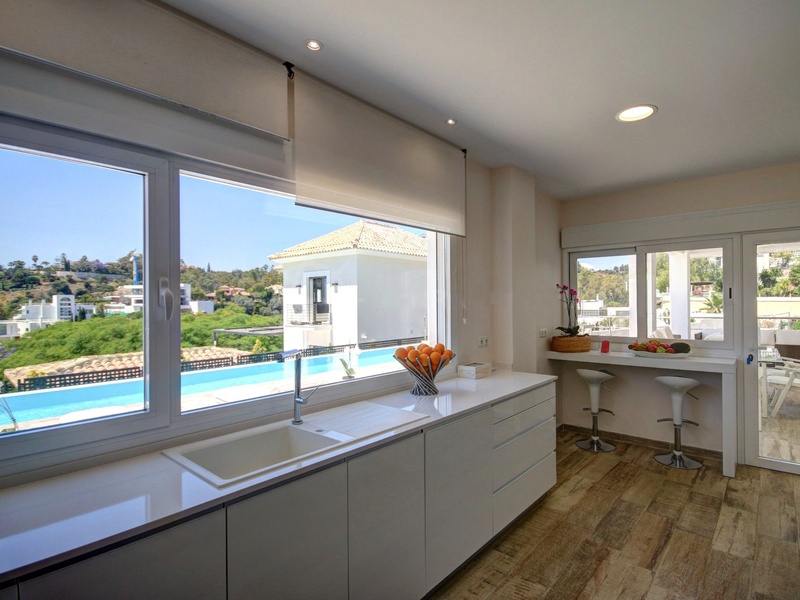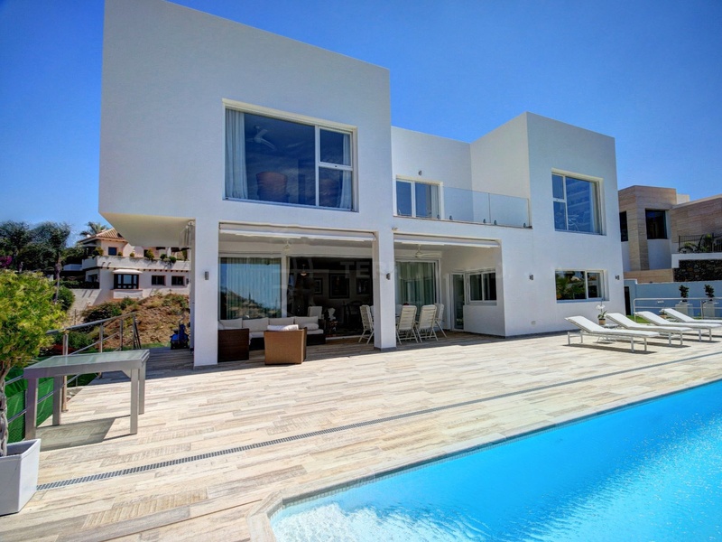 Villa for sale in La Quinta Golf, next to hotel Westin La Quinta. Built on a plot of 1,024 m2, two floors with a total of 576 m2. It has 4 bedrooms, 2 bathrooms en suite and a guest toilet. There is a heated pool of 52 m2. Faces south west and has panoramic views of La Quinta valley and sea views. Floors are of travertine marble, slabs 90x60 cm. Art home automation, underfloor heating throughout the house, ceiling fans and A/C, electric shutters and awnings, water softener, German cuisine, elevator and alarm preinstallation.