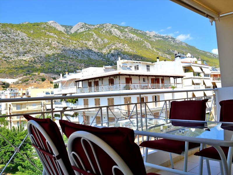 Квартира находится в курортном городке Лутраки области Коринфия, который хорошо известен в Греции благодаря своим минеральным источникам. Само название города означает «лечебные ванны». Маленький, комфортный город, является любимым местом отдыха для афинян и туристов. В Лутраки находится хорошо известный Casino Club Hotel Casino Loutraki - один из крупнейших в Европе, в одном комплексе, который включает в себя роскошные отели и рестораны. Лутраки знаменит своими целебными минеральными водами: здесь построен гидротерапевтический центр, где можно пройти курс оздоровительных процедур. Кроме того, тут же к услугам азартных гостей — самое крупное на Балканском полуострове казино.