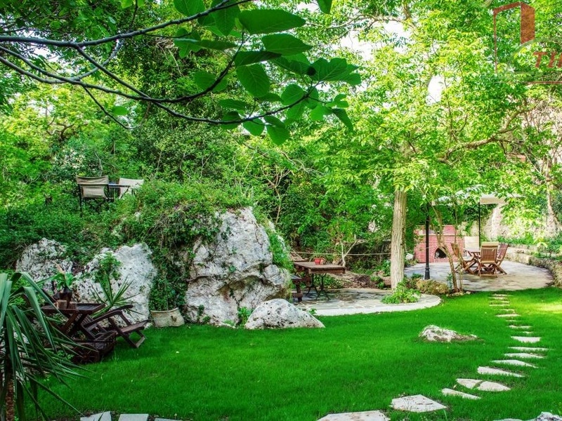 In the one acre surrounding the residence you can find a natural waterfall which ends in wonderful lakes forming a composition framed by stone floors, modeled sitting rooms, rock gardens, and ornamental objects of the past.