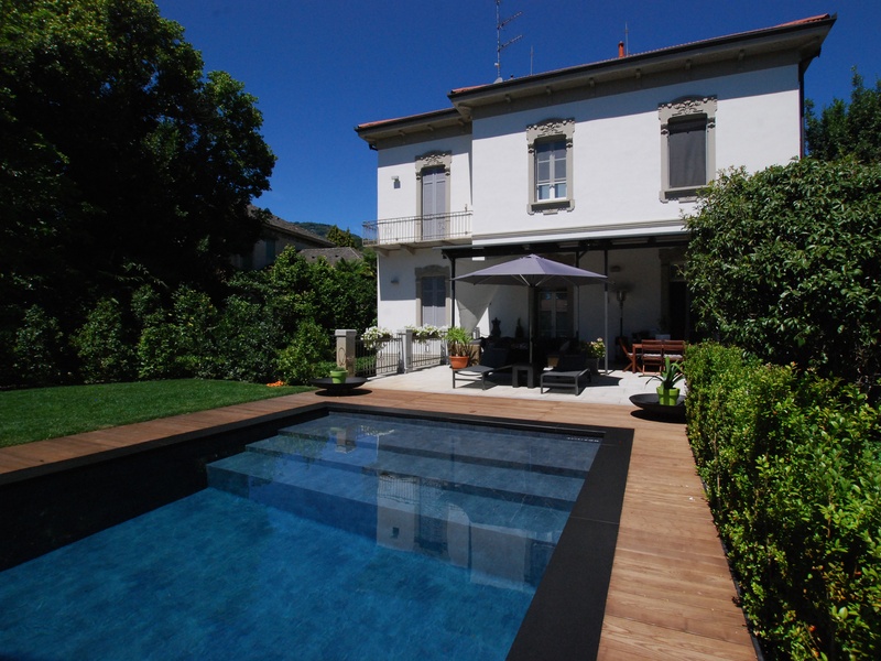 This property of 1900 is in Lesa, comprising a villa and its outbuilding, fully renovated in 2003 with refined materials and technological systems revisited in 2013. On the first floor the villa is divided into a spacious entrance hall with coffered ceilings and the original fireplace of the age, a study, dining room adjacent to a large kitchen, guest bathroom in black marble and coating in cream-coloured onyx. On the first floor there are 3 bedrooms, a bathroom with tub and shower with fossil black marble flooring. The master bedroom has two walk-in closets, an en suite bathroom with shower covered with red onyx. On the second floor there is the attic with a living room and kitchen corner, 2 bedrooms and a bathroom. In the basement a gym has been created with a Turkish bath, Kneipp bath, shower and Jacuzzi, relaxation area, laundry room, boiler room with equipment for the air circulation. The wine cellar has been created with the flooring and the walls covered in stone. The property includes a garage for 4 cars. The annex building is on two levels with 2 bedrooms and a kitchen.
