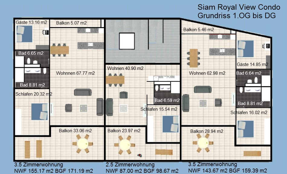 Die Überbauung befindet sich an einer einmaligen und exklusiven Wohnlage im Siam Royal View. Das zählt zu den besten Wohnüberbauungen in der Region. Die exklusive Wohnung hat einen für Thailand ungewöhnlich grosszügigen Grundriss und Balkonfläche von 24 m2. Die Wohnung hat ein europäische Standardausbau komplett eingerichtet mit Küche, Bad, Aircon in allen Zimmern usw. virtuellen 3D Tour http://spaces.archilogic.com/3d/s_r_v_condo/ihewjtwm?modelResourceId=1799a3da-b62b-4629-8165-e4f13e350229&mode=edit&view-menu=none&main-menu=interior