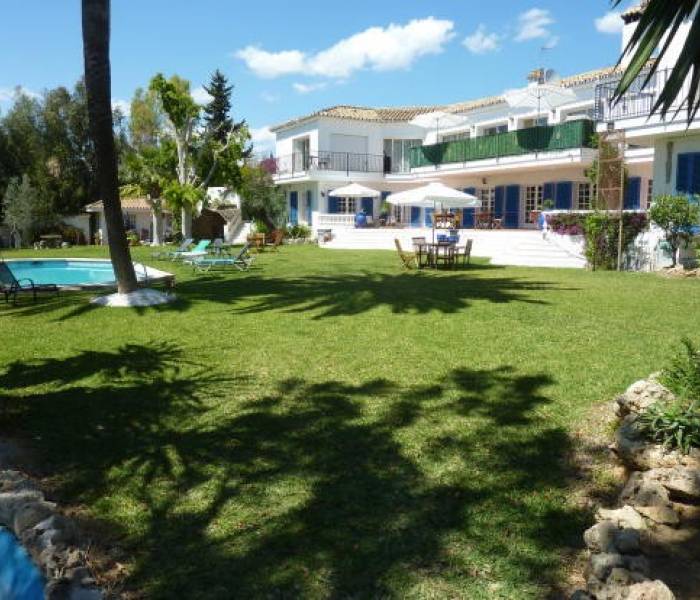 Villa for sale on the sea coast Sierresuela, municipality of Mijas (Mijas), just a few minutes walk from the town of Fuengirola (Fuengirola), Spain. Beautifully reformed large villa is currently working as a successful B & B, which can demonstrate a good return on investment. However, the villa can be ideal for a large family or even as a share of the property between 2 or 3 families. The villa has a crescent shape with all rooms, a swimming pool, there is a flat under the car port, which is currently leased for the long term. The property has many possibilities, like a successful business, great family accommodation, family residence with the possibility of renting on a long term basis. Property Details: Bathroom: 13 Bedrooms: 13 Living area: 961 m², terrace 150 m², swimming pool: yes, garage: yes, garden: yes. Features: satellite TV, ADSL / WIFI, Guest Apartment, Storage Room, Laundry, barbecue, covered terrace, fitted wardrobes, private terrace. Kitchen: Fully equipped. Garden: Private, Landscaped. Orientation: South-West