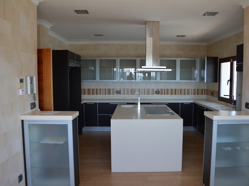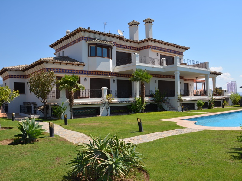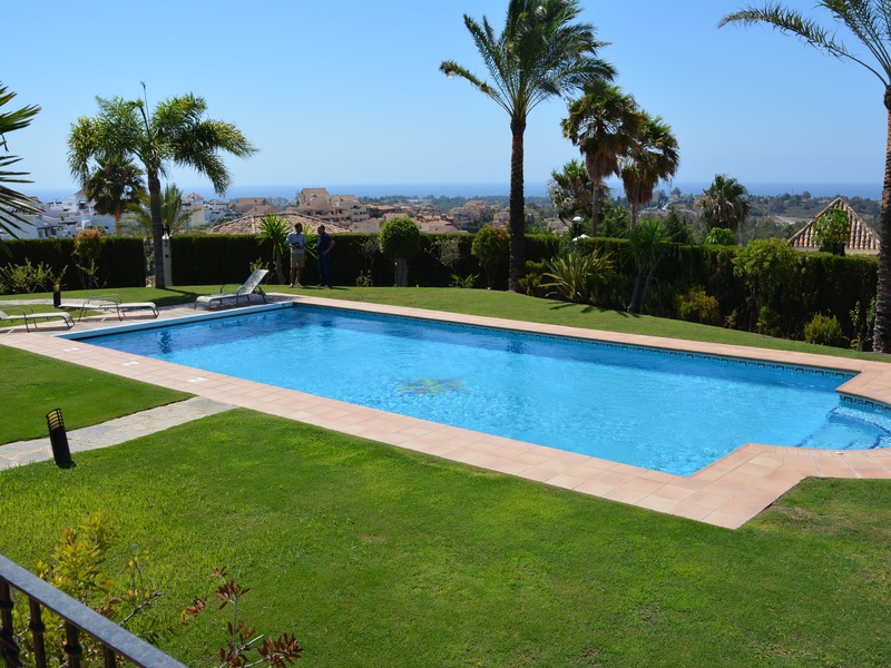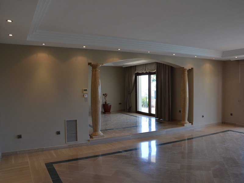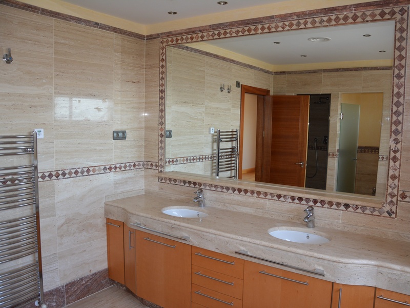Villa for sale in La Quinta Golf. Built on an area of 1,728 m2, two floors with total area of 1057 m2. It has 5 bedrooms, 5 bathrooms and a guest toilet and 2 apartmets in basement. There is a pool of 100 m2 with heating. The orientation to the south-west and views of the golf valley and the Mediterranean Sea. The floors are made of travertine, tile 60x30 cm. Smart home last generation system, underfloor heating throughout the house, ceiling fans and A / C, electric shutters and blinds, water softener, German cuisine. elevator and alarm installation.