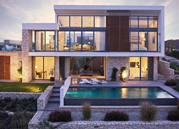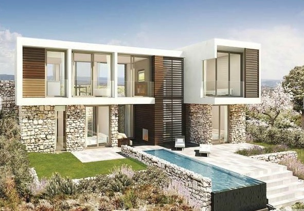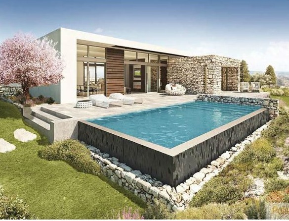 For sale modern villa in Paphos, a city in the southwestern part of the island of Cyprus. Administratively the town is the center of the eponymous district. The villa has 3 bedrooms, a living area of 300 sqm, land area 1350 sq.m .. Minthis Hills - this is the best golf property! This complex reveals new facets of living in the Mediterranean, and offers luxury homes and villas in Cyprus. Distinctly contemporary architecture inspired by local cultures, organically merges with nature. Each residence EXCLUSIVE property is a smooth series of open and closed areas, allowing you to enjoy an ideal climate all year round in Cyprus. Designed by world-renowned architect's "Woods Bagot" residence Minthis Hills are the best set of golf real estate abroad, which differ in a relaxed elegance. It draws inspiration in the traditional Mediterranean architecture, characterized by open spaces, water bodies, and private holdings. Reflecting the character and style of Cyprus golf property, they are made up of traditional stone and rich wood elements. Drawing on these elements into a luxurious modern interior, "Woods Bagot" achieves an exquisite timeless design takes full advantage of its spectacular surroundings. The architectural approach focuses on creating sensations living in nature, being indoors, with panoramic windows, framing views. Characteristic for this area of luxury golf real estate project provides natural ventilation of each villa and forms airy interiors, open-plan, and extensive outdoor areas designed for spending time in nature. All villas are equipped with spacious terraces, outdoor fireplace and a panoramic swimming pool. The choice seems to be somewhat of variants, each of which can be adapted to the requirements of the buyer.