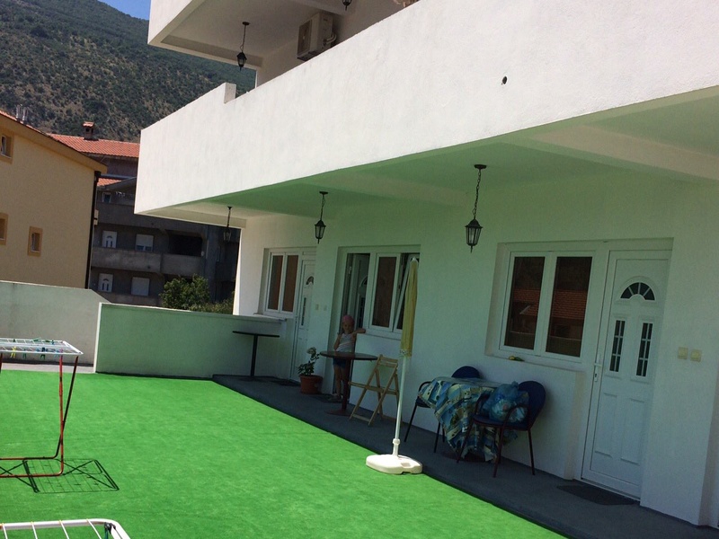 Выходит на большую террасу с ковром ( 85м), изумительным видом на окружающие горы и море, до которого можно доехать на машине за пару минут (800 м).