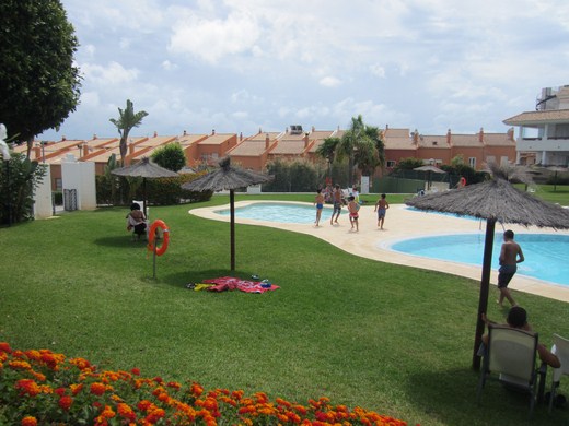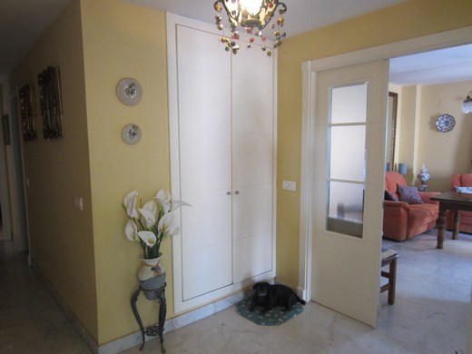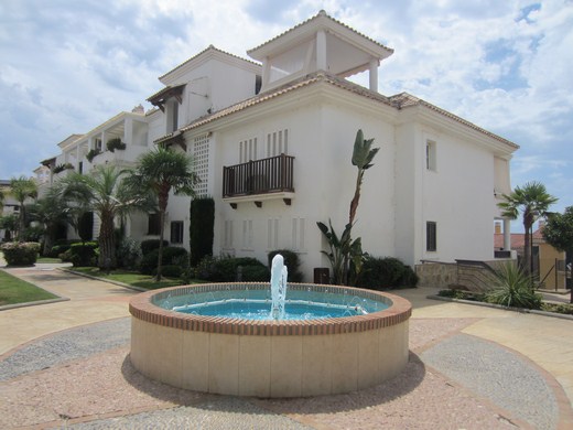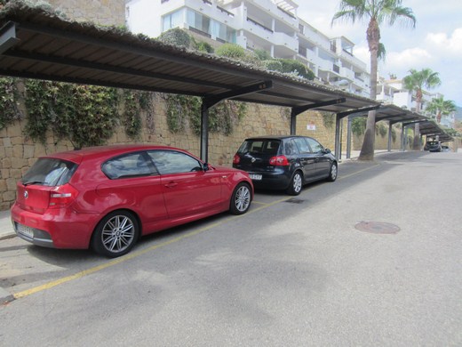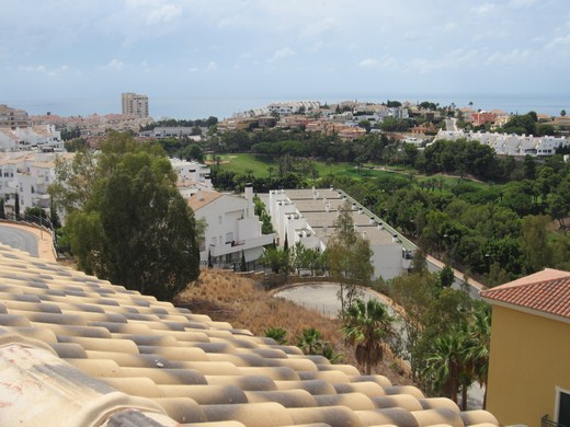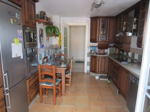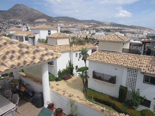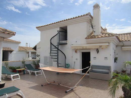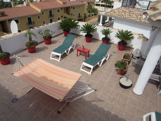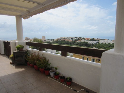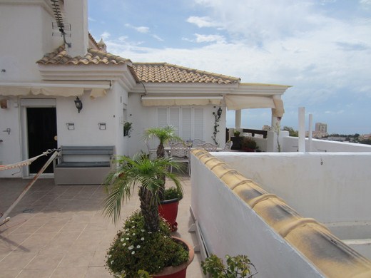 Penthouse on a second top floor, very private, no neighbour on the same floor, 2 bathrooms, kitchen, foyer, hallway, spacious living room of 39m2 with beige marble floor, two bedrooms with access to private balcony of 15m2, master bedroom with en-suite bathroom and jcuzzi tub plus exit to the terrace of 135m2. 150m2 indoor living space and 150m2 of terraces, partially covered, plus an attic (in use as storage) and solarium of 75m2. Panoramic (golf, mountain, sea) views. Furniture negotiable. Extras: 2 carport parking spaces with lift to upper level, 5 fitted-in wardrobes, ceramic hob, optical fiber in the building. Gated complex with garden, andalusian patios with fountains, swimming pool, children's pool, caravans parking area, barbecue area, 2 paddle courts, playground. very quiet area with no traffic noise. Possibility to buy an underground parking space. Beach at 900 m.