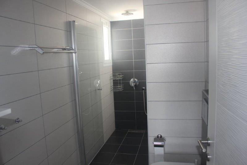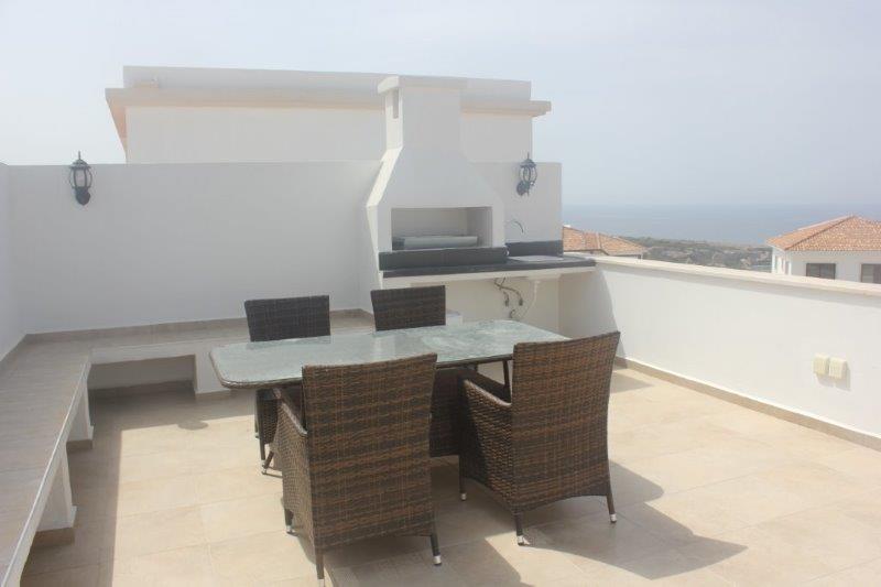 В ванной комнате большая и удобная душевая кабина.Кухня имеет открытую планировку и оборудована всем необходимым. В гостиной и столовой есть удобные, большие диваны. Так же имеется еще одна ванная комната с душевой кабиной. Все комнаты оснащены кондиционерами. Открытая терраса для отдыха на свежем воздухе находиться на крыше. Терраса оснащена встроенным барбекю и раковиной, что позволяет насладиться едой на свежем воздухе с великолепным видом на закат и море Кроме этого на крыше есть шезлонги для принятия солнечных ванн и душ. В апартаментах есть спутниковое телевидение и WiFi. Блок “А“ расположен центре комплекса.