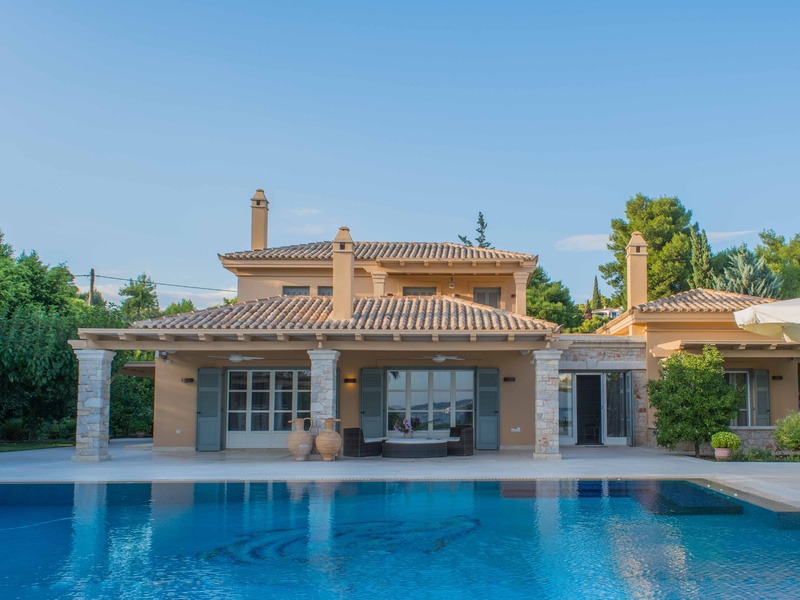 The luxurious, newly built villa is located right on the beach in the heart of Costa of Porto Heli, which is the best neighborhood of the wider area. Around it there are large, guarded villas. This villa built on three levels combines perfectly the unique view over the island of Spetses and the seclusion offered by its beautiful large garden. Three steps down is the beautiful beach and the distance from the small port of Costa is 300m. Right next to it there is a dock for at least two yachts. It is probably the only villa in the area located right on the beach and in the best neighborhood. Its architecture is special with luxurious marbles and impressive roofs. The bedrooms are spacious and independent. Outdoors, there is a seating area beside the beach creating a pleasant feeling of being on the water.