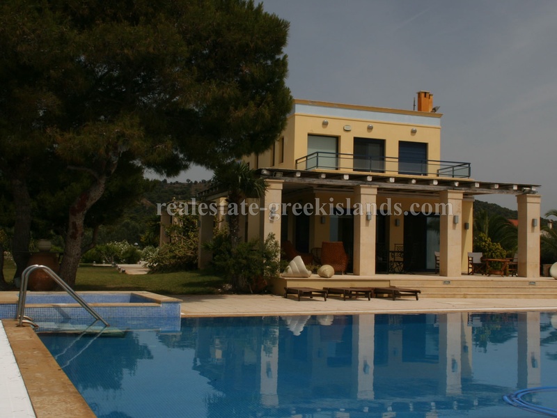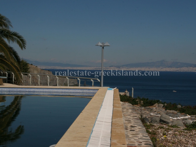Villa by the sea in Agia Marina, close to the best beach on Aegina with unique view of Glyfada, Varkiza, Aegean Sea. It has 3 levels, 320sq. m. on a 11 acres plot with 2 pools 50 sq. m. and 80 sq.m. It has 6 bedrooms, 2 living rooms, 2 kitchens, 5 bathrooms and a fireplace. High quality construction with autonomous heating system, aluminum frames, A/C, BBQ, outdoor parking space, storages, alarm system. At the outdoor space there is a really beautiful little church. There is also a guest house (3 levels), 210 sq.m. with 5 bedrooms, 3 bathrooms and a storage. On sale for 2 800 000€