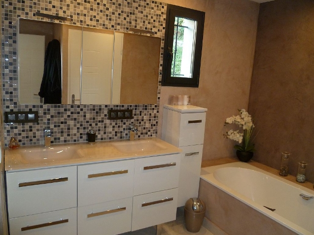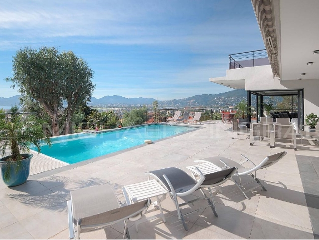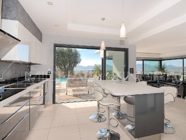 Modern villa in the heart of a quiet residential neighborhood near the residential area of 270 sq.m. There is a living room with a terrace, an open fully equipped kun, master bedroom with dressing and bathroom. On the first floor: 4 bedrooms-suite with a / v and access to the terrace, laundry room. Infinity Pool 8x4 m. Uhoezhenny picturesque site. 5 local garage.
