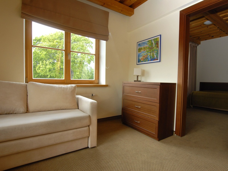 On the one hand against the building lies a small valley, surrounded by water and a tourist popular River Žeimena, outside the building about 200 meters away is the pictures lake Žeimenis and beautiful park. It is expected that because of hotel location it will be attractive not only for country and water tourism lovers, but also for Autoturist, small workshops - training providers, hunting and fishing clubs. Hotel has also a sauna, jacuzzi, conference hall, banquet hall, provides food, bicycles, boats and other tourist hire, perfect conditions for mushrooms and berries to collect.