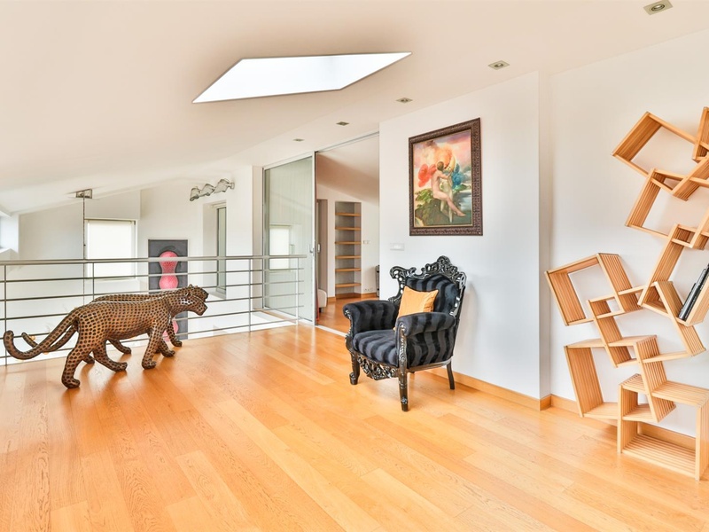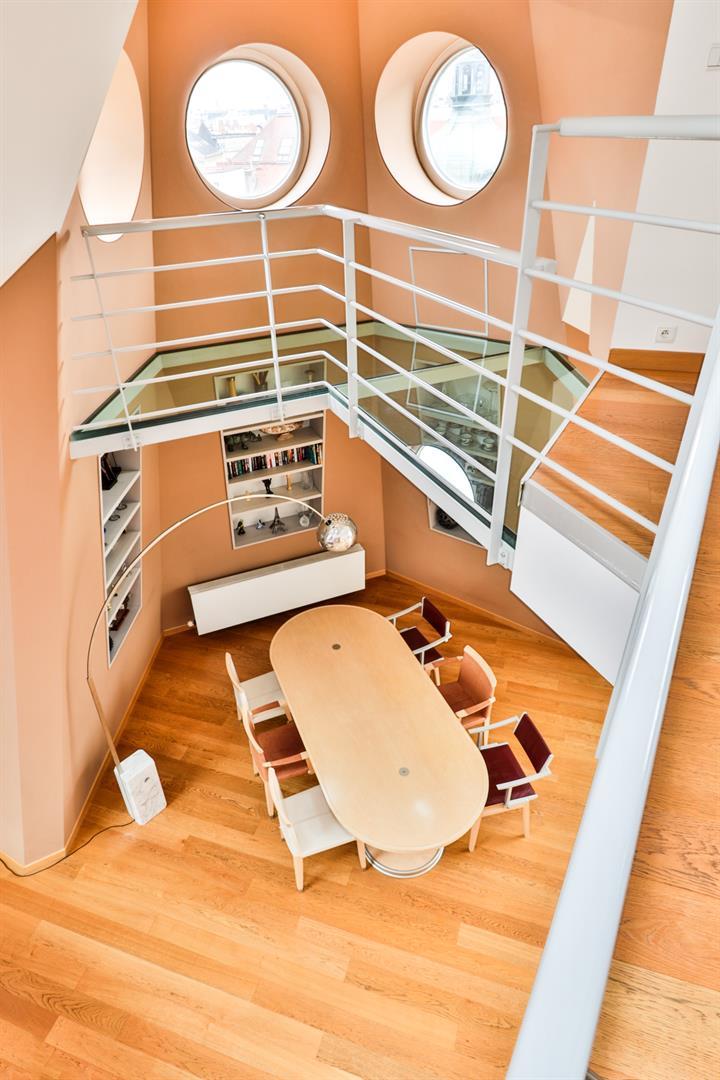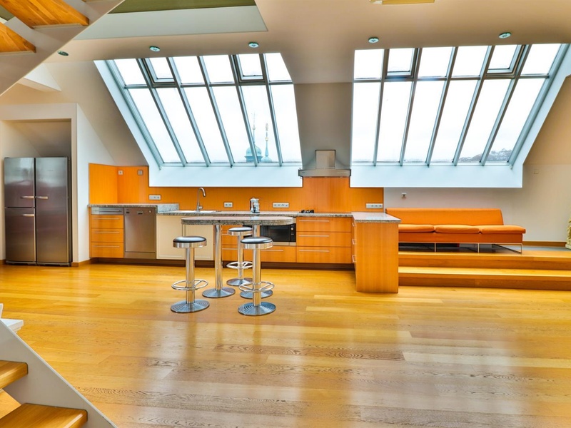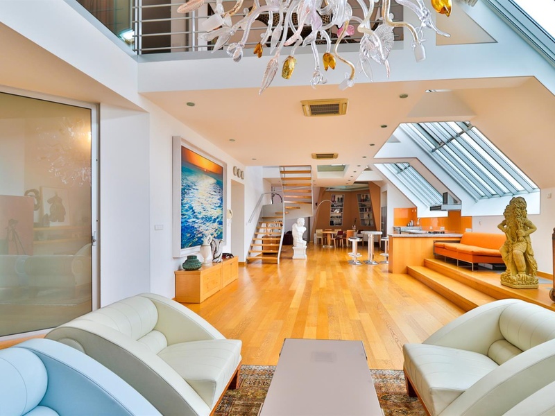 Дизайн в стиле арт-деко, который не стареет, добавляет частичку элегантной роскоши в квартире. Окна на потолке позволяют наблюдать ночное небо, не выходя из постели. Терраса на крыше дает возможность находиться на улице с уникальным видом на центр чешской столицы. Полностью автоматизированные технологии управления (окна, жалюзи, кондиционер) и прямой доступ из лифта -  относит эту недвижимость к современному и качественному жилью.