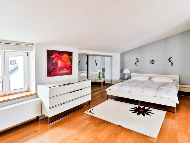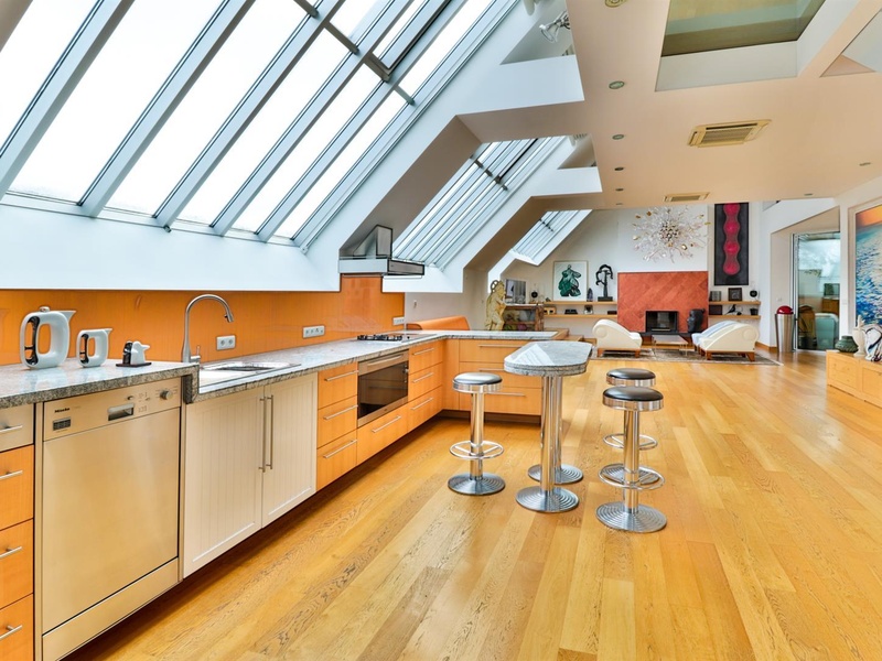 Основная жилая часть квартиры расположена на нижнем этаже, где находится гостиная и столовая, кухня и зона отдыха с камином из дерева. На верхнем этаже расположены две спальни, зимний сад с балконом, ванная комната с душем, отдельный туалет и прачечная. Женщины наверняка оценят большой гардероб.