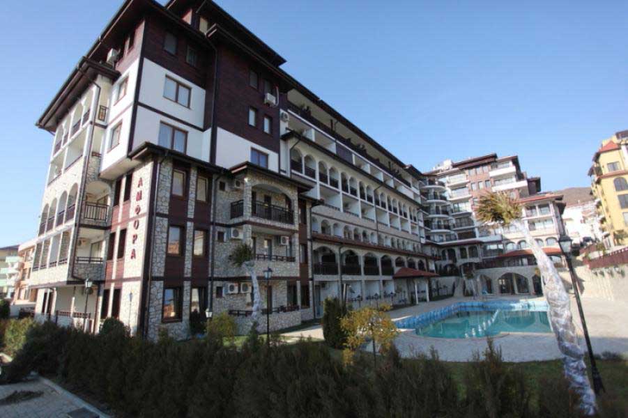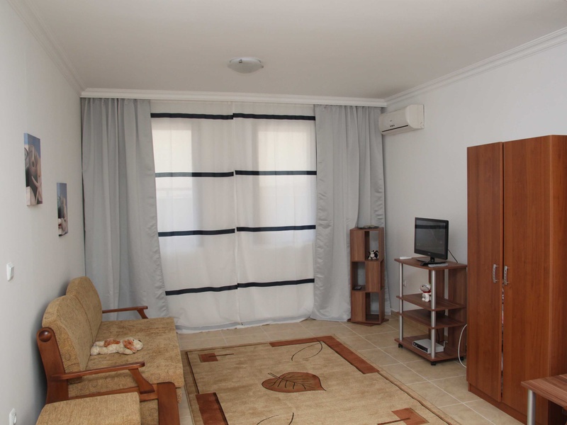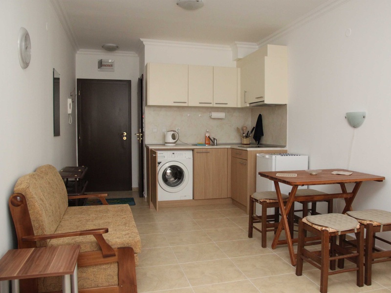 Zu verkaufen ist eine gemütlich möblierte 1-Zimmer-Studiowohnung im Erdgeschoss im Komplex Amfora in Sveti Vlas. Der Komplex ist 50 Meter vom Strand und 250 Meter vom Yachthafen Marina Dinevi entfernt.