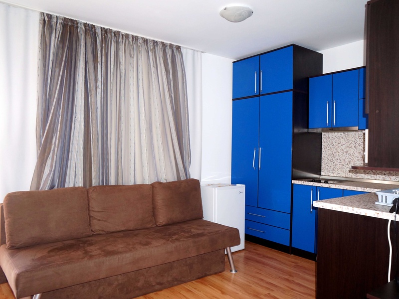 Zu verkaufen ist eine 1-Zimmer-Studiowohnung mit einer Wohnfläche von 35 m², passend sowohl für den Urlaub als auch für ganzjährige Bewohnung. Das Studio ist voll möbliert und mit Haushaltsgeräten, Klimaanlage und Geschirr ausgestattet. Die Wohnung befindet sich im Wohnkomplex Sijana 4 in der Stadt Sveti Vlas und ist ungefähr 150 Meter vom Meer, 500 Meter vom Stadtzentrum und nur 850 Meter vom Yachthafen Marina Dinevi entfernt. Die Wohnung liegt im 4. Wohnstock und besteht aus Wohnzimmer mit kleiner Küche, Badezimmer plus Toilette und Terrasse.