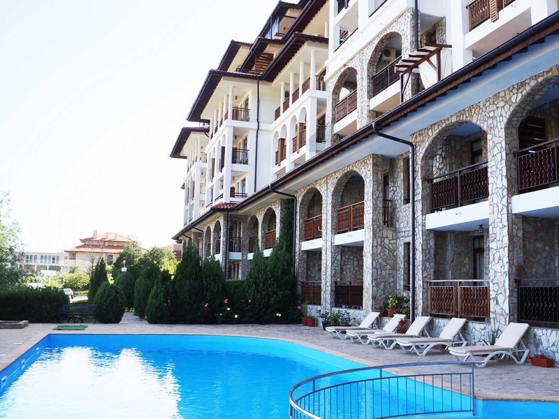 Zu verkaufen ist eine 2-Zimmer-Wohnung mit einem Ausblick auf das Meer in Sveti Vlas, Bulgarien.