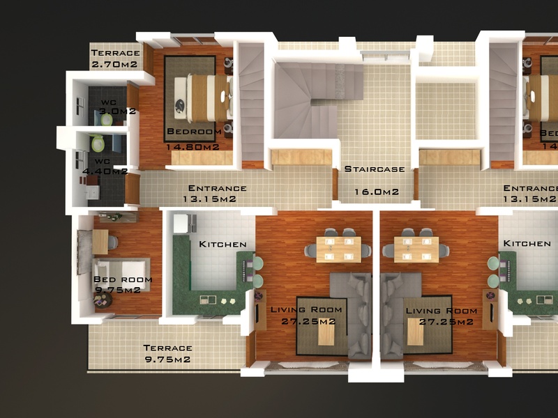 • Each house has four apartments 2 + 1 and two duplex 4 + 1.
