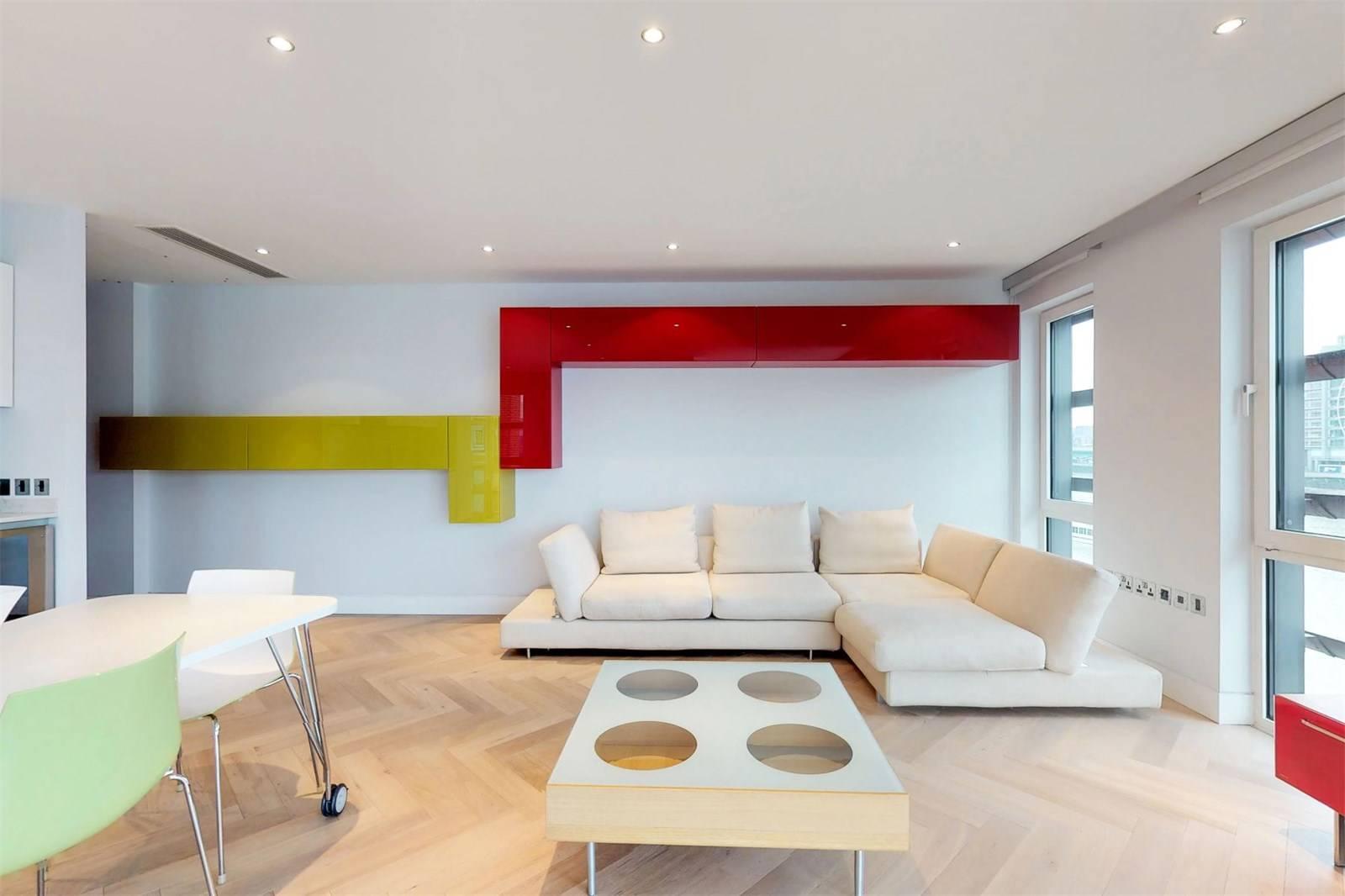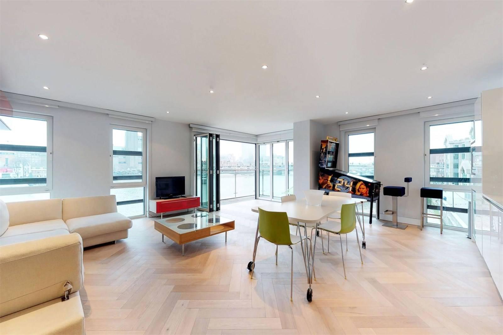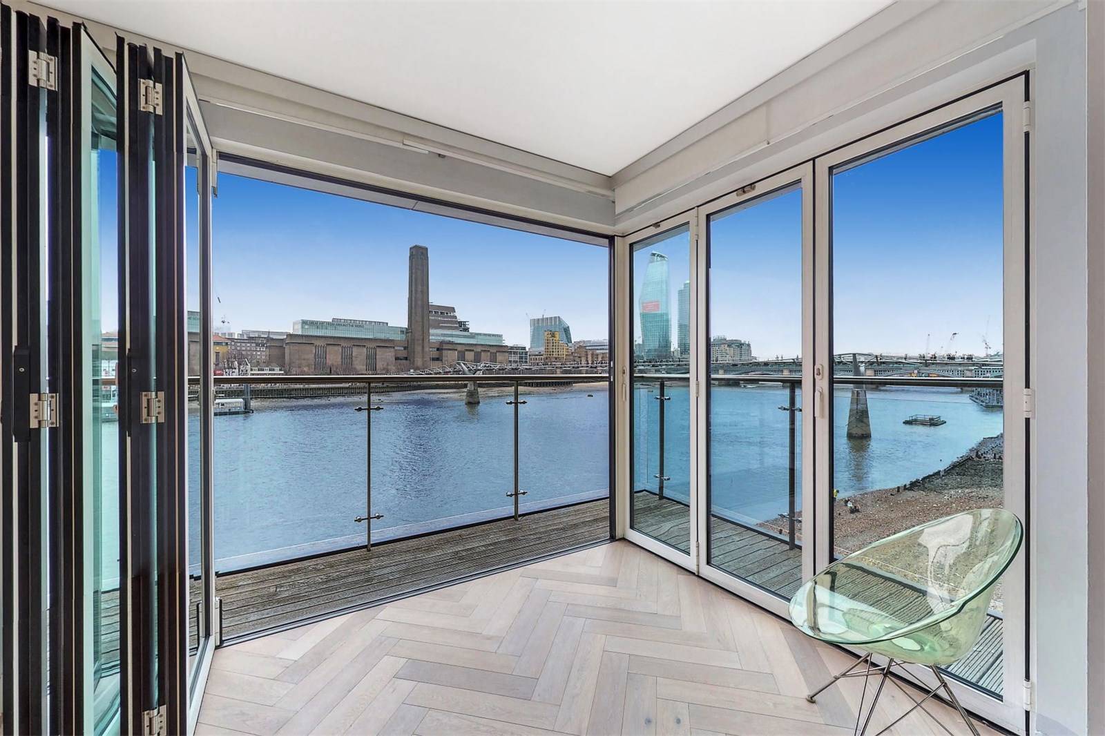 The bi-folding doors open onto a private balcony, with south facing views, allowing for light to flood into the apartment. The outside balcony is truly spectacular and unique suspended directly above the Thames with unobstructed views of the Thames skyline.