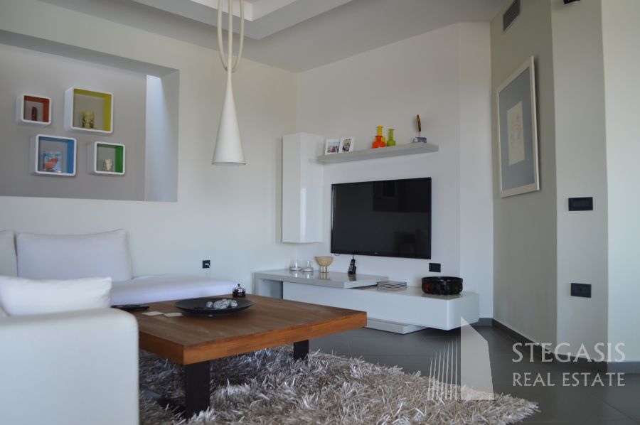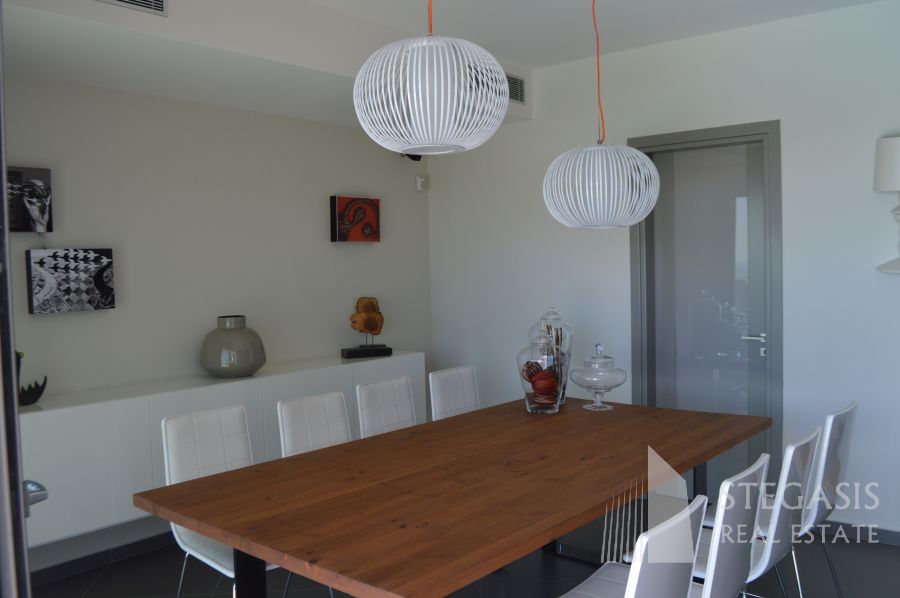 This new fantastic, luxury and modern villa is situated at only 500 meters from the Agios Nikolaos beach, the Temple of Poseidon at Sounion is 15km away, Athens International Airport is 15 km away, Athens city centre is 25 km away and Piraeus Port is at a distance of 40 km. The constructed area of 295sqm is spread over four levels: The ground floor has a big open living room with fireplace, sitting area with TV, a dining room and open space Italian kitchen with view on an overflowing swimming pool and panoramic view on the ocean. On this level we also have an office and guest WC. Outside an open terrace with outdoor swimming pool, barbecue and irrigated gardens. On the 1st floor we have small sitting area, very large master bedrooms with dressing area, and 2 additional bedrooms with a common bathroom, all this with a panoramic view on the ocean. On the highest level we have small living room with kitchenette, one master bedroom with dressing area and of course panoramic view on the ocean. The basement consists of playroom with bathroom and garage available for 5 cars with an electric opening, swimming pool equipment room, laundry room with technical room where the smart-house system is located. Highest quality during construction and expensive (designer) furniture!
