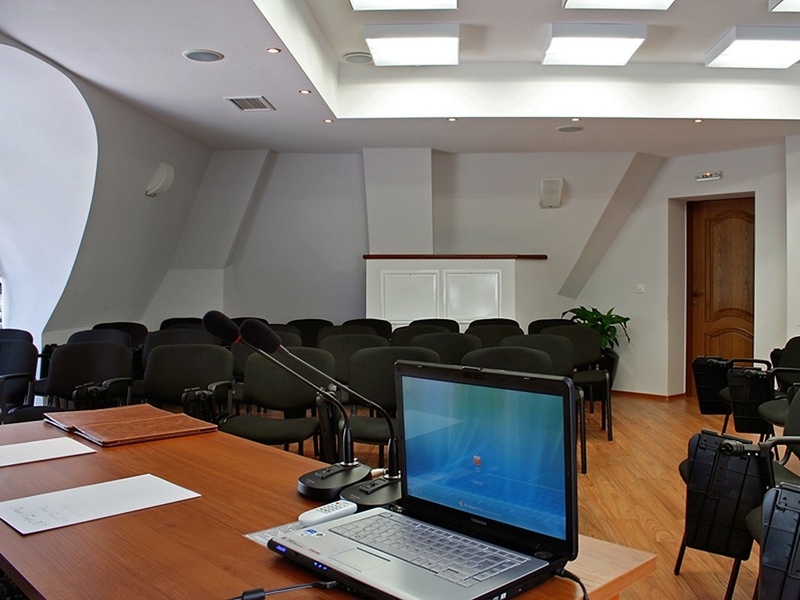 There are also two multi-functional conference rooms, each with 40 seats. They are separated by a soundproof wall and can be transformed into a common room for 80 persons (100 square meter) for events with a large number people. They have different colors and can be used for various functional purposes from business meetings to cocktail parties, and can be extended to the main restaurant Danube. In addition to the lates technology equpement the halls are provided with all office appliances needed (photocopiers, printers etc.) including system for simultaneous translation.