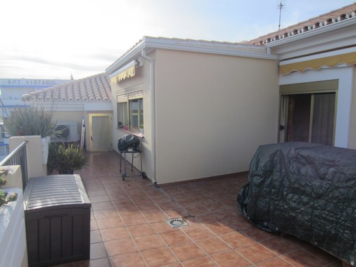 Beautiful penthouse with panoramic views towards the sea. Bright, all exterior, two double bedrooms with fitted-in wardrobes, one with balcony (sea view), the other with large bathroom en suite, ,jacuzzi bath tub and exit to a private terrace of about 20m2. Second bathroom with shower. Living room with embedded halogen lights and exit to the large main terrace of about 50m2 with beautiful views. Spacious, family size designer kitchen, fully equipped and with big windows and sea views.