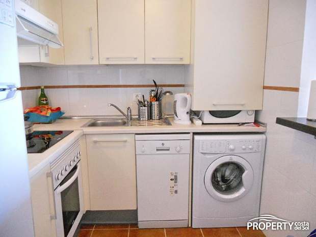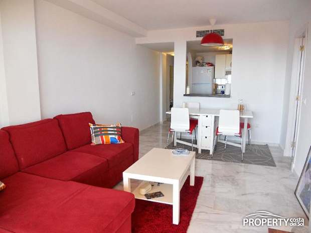 A lovely, bright appartment. The total area measures 76 m2 and has 3 rooms ( 2 bedrooms and 1 living room), open kitchen, marble stone floor, two bathrooms with bathtubs, one washing machine, dish waser,and 15m2 terrace with a lovely open view. The appartment is new and lies on the 2nd floor in a 3-floors-building and in the sharing area there is a big swimming pool for free use. Includes an underground parking space. The appartment lies 12 km from Málaga City and airport and 1500m from the Beach, Tivoli and hospital and 500 m from shopping. Bus stop nearby.