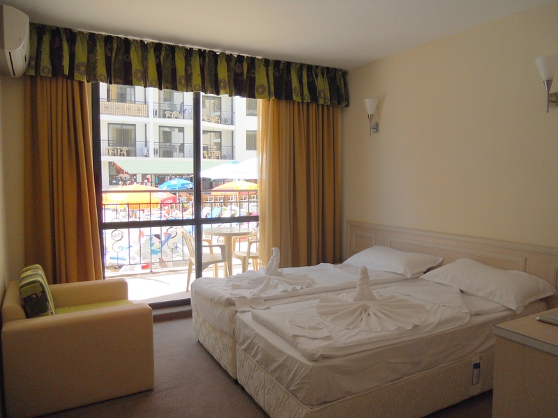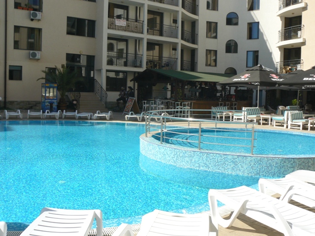 Студия с мебелью и техникой  в  гостиничном комплексе, находящемся только в 200 метрах от пляжной полосы самого известного болгарского курорта – Солнечный берег. Покупка апартаментов в этом комплексе является прекрасной возможностью для  хорошей и долгосрочной инвестиции. Жилье состоит из зала с кухонной части, сан.узла, прихожей и балкона. С видом на бассейн. Находится на первом этаже. Площадь составляет – 40.15 кв.м.