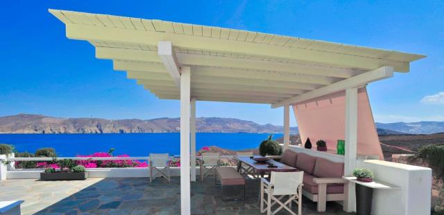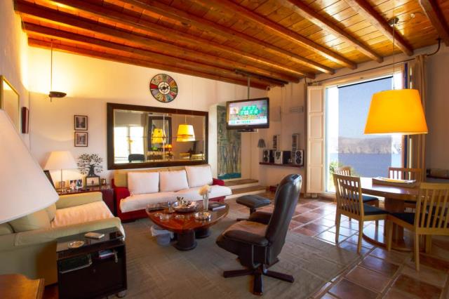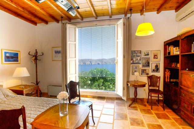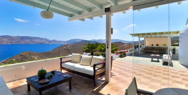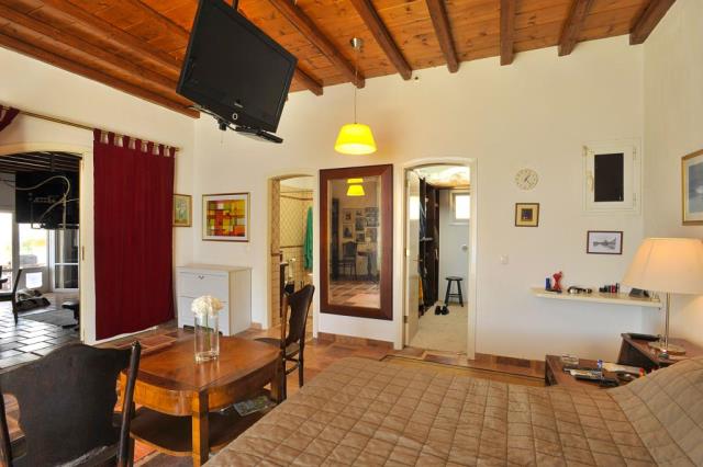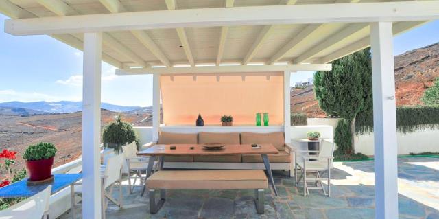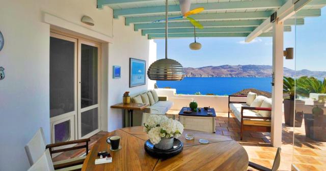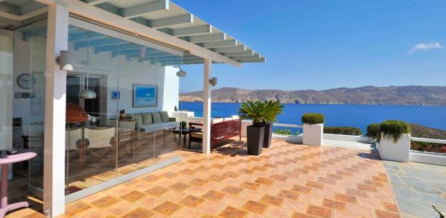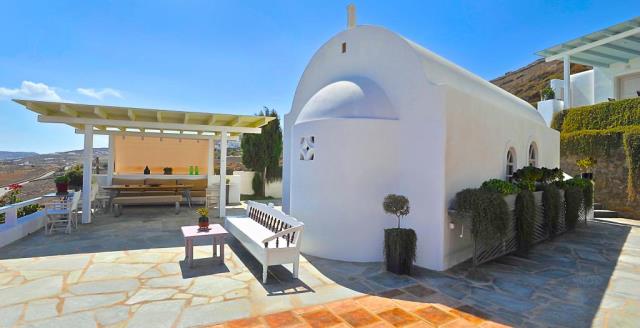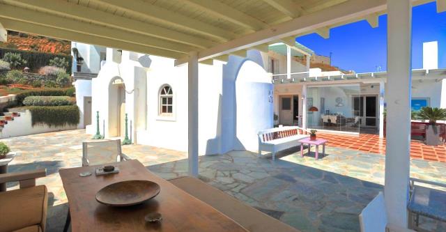 Flat for sale in a villa on the island of Mykonos Greek island, one of the islands of the Cyclades, is located in the central part of the Aegean Sea, the coastline of which reaches 89 kilometers. Closest to him of the island - Andros, Tinos and Delos. The apartment consists of living room, kitchen, 2 bedrooms with bathrooms and dressing rooms, as well as an additional bathroom. All rooms have large windows, even a window on the roof, which allows plenty of natural light to penetrate into the house. The large openings also allow the residents to enjoy the view, regardless of where they are sitting. At the level of the house has a large courtyard, open living area with views to the south, and a second living room faces north; in the shade of the gazebo. There is also a small chapel with marble Templo and original paintings. From the courtyard, a few steps we get to the second level, where two guest houses are being built. They are separated by a shaded veranda and each has a large bedroom, bathroom and cloakroom. At the level below the main house, there is a garage that can accommodate a car, motorcycle, and storage space for the necessary tools. Next to it there is another covered parking space. 2,000 m² plot includes two entrances to the property and driveway around it, in order to facilitate access to the main building, guest houses, a garage and two storage rooms. This property is perfect for an easy life: family and group of friends. The house was built in 2004. The total area of the house is 194 sq.m .. The distance to the airport 17,20 km.