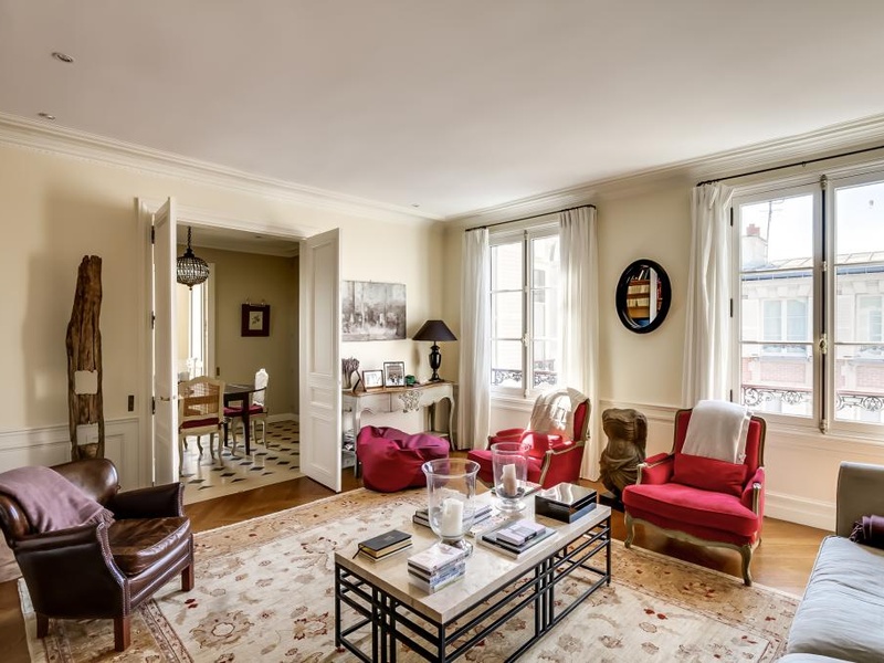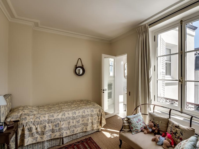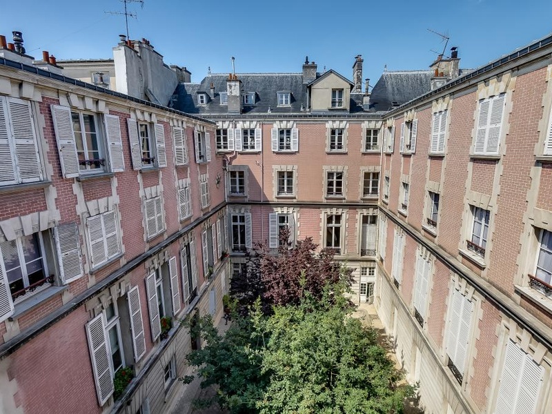 The building in the courtyard of the hotel Huguet de Sémonville, 4-bedroom apartment is located on the 3rd (and last) floor with elevator. In excellent condition, comprises entrance hall, living room with fireplace, dining room, kitchen, two bedrooms with air conditioning, two bathrooms with shower or bath and toilet. Garden and the rooftops of Paris.