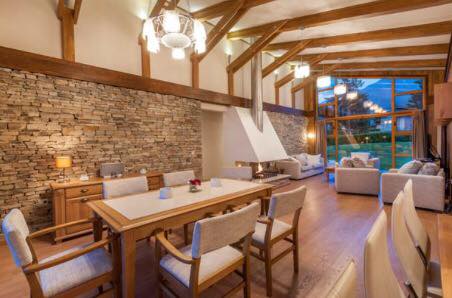 Дома имеют прекрасный вид на горы Пирин, Рила и Родопи. Дома отличаются роскошью и комфортом. Внешний вид и интерьер полностью соответствуют типичному горному стилю. Построенные в комплексе полностью из местных эко материалов / дерево и камень /. У них есть просторная гостиная с камином, столовая, кухня, три спальни, две ванные комнаты, гостивой туалет, складское помещение. Кроме того, каждый дом имеет просторную террасу с барбекю, где вы можете насладиться приятным отдыхом после долгого дня провежденного на поле для гольфа или на горнолыжных склонах. Дома имеют экологическое отопление - пеллеты, которые очень практичны в обслуживании.