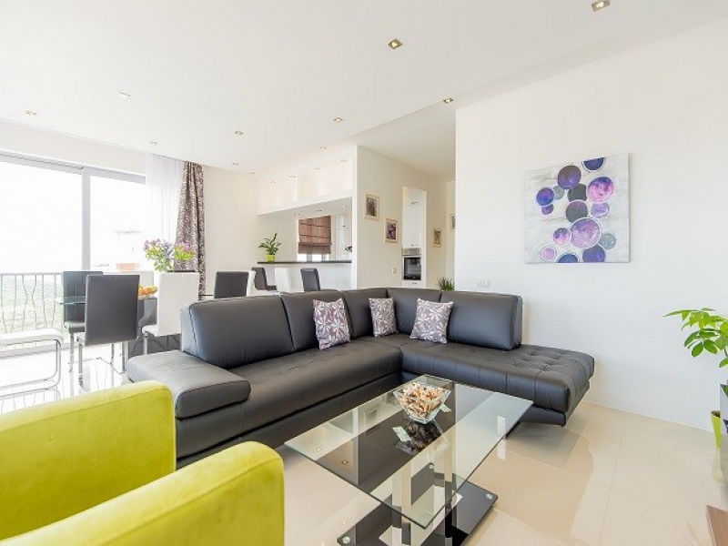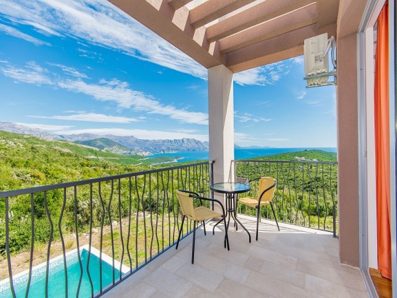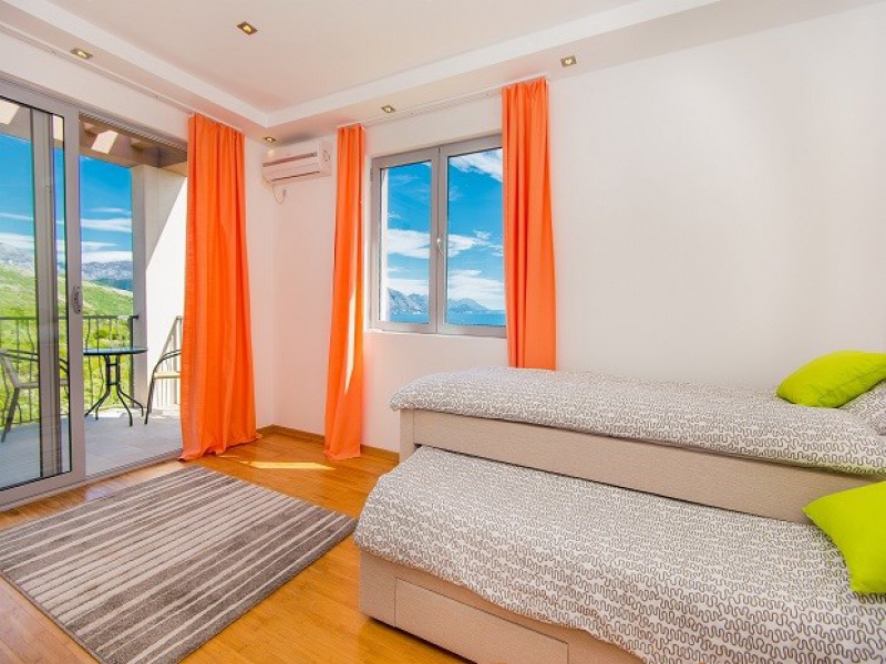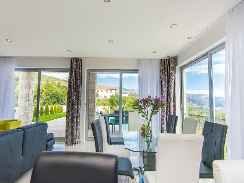 Новая вилла построена на зеленом склоне Будванской Ривьеры, в поселке Кримовица, всего в 7 км от Будвы. До ближайшего пляжа в Трстено – 900 метров.