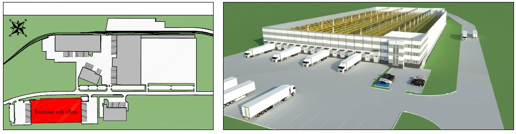 Opportunity to lease/ buy warehouse, administrative premises next door to railway station and steps away from container terminal. New construction.