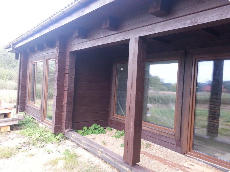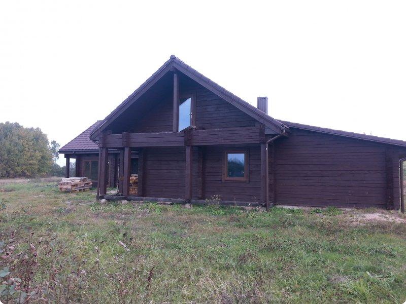 Wooden hause for tourism activity near Rubikiu lake in Lithuania.