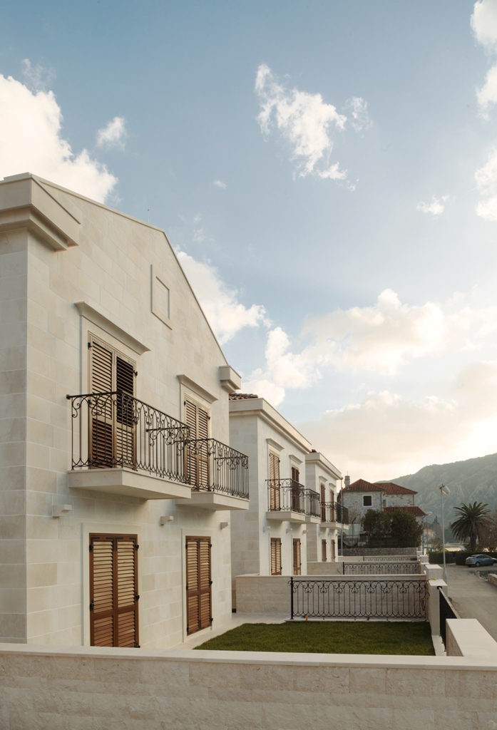 New Mediterranean-style villas are located in the tourist village in Dobrota, which consists of a boutique hotel, villas on the first line and a beach area, additionally equipped with a breakwater with a marina.