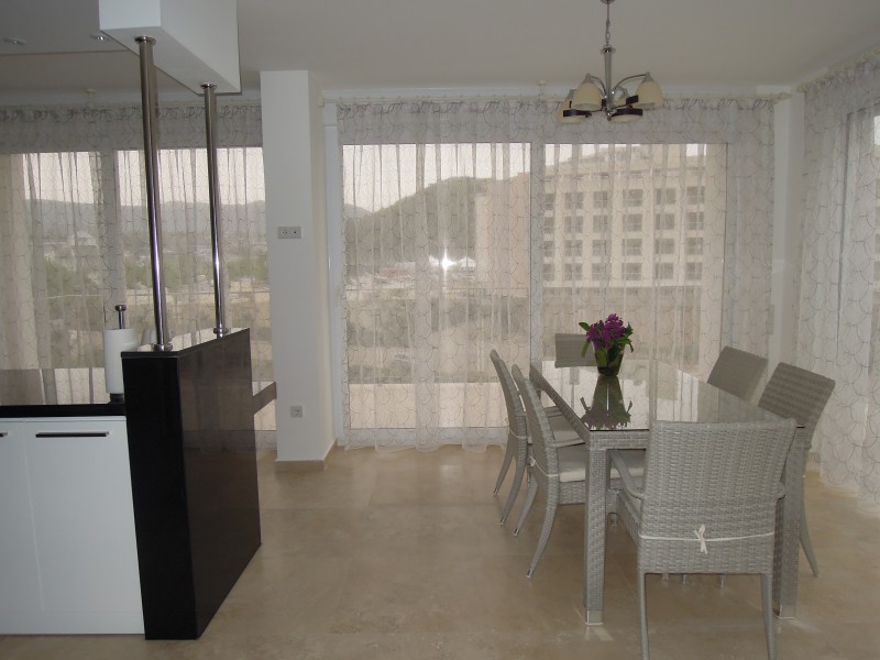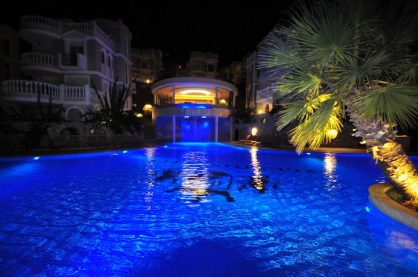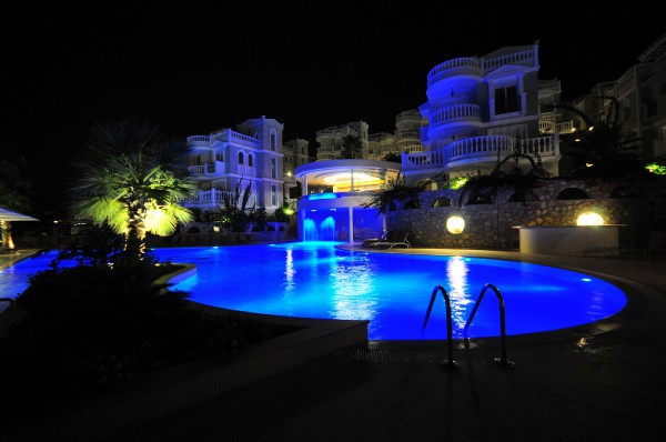The complex offers 72 villas, which feature a unique design solution emphasizes. The complex is built on a hill, each villa offers a magnificent view of the sea, to which no more than 400 meters. Of course, the complex belongs to the private beach equipped with deck chairs, umbrellas, shower. On the territory there is a great pool of 330 m2 with a waterfall and Jacuzzi, sauna, Turkish bath and fitness. Just one call and an electric golf cart will take you anywhere in the complex or the beach. Note that all these services are completely free.