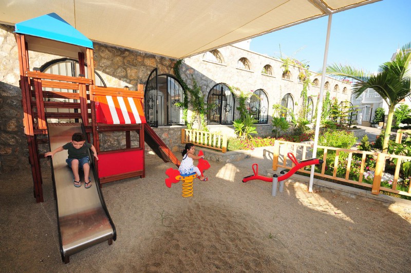 Do not forget about the youngest guests. For them is equipped with cozy children's playground with a slide, swings and a gazebo for games around which an artificial pond real live goldfish.
