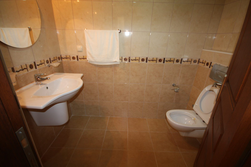 Floors in the hall, bathroom and balcony - ceramic tiles, in the bathroom – designer’s glazed surface, installed quality sanitary ware Vitra and Hilton.