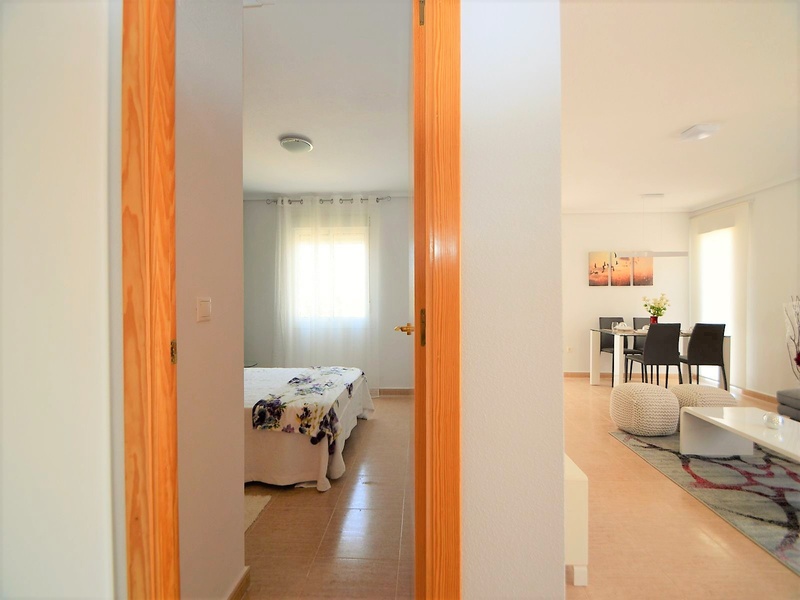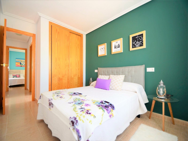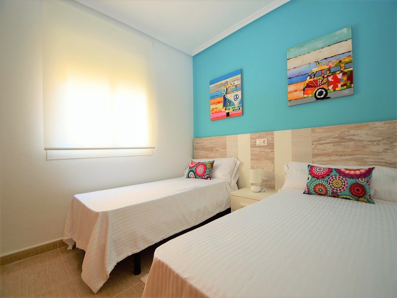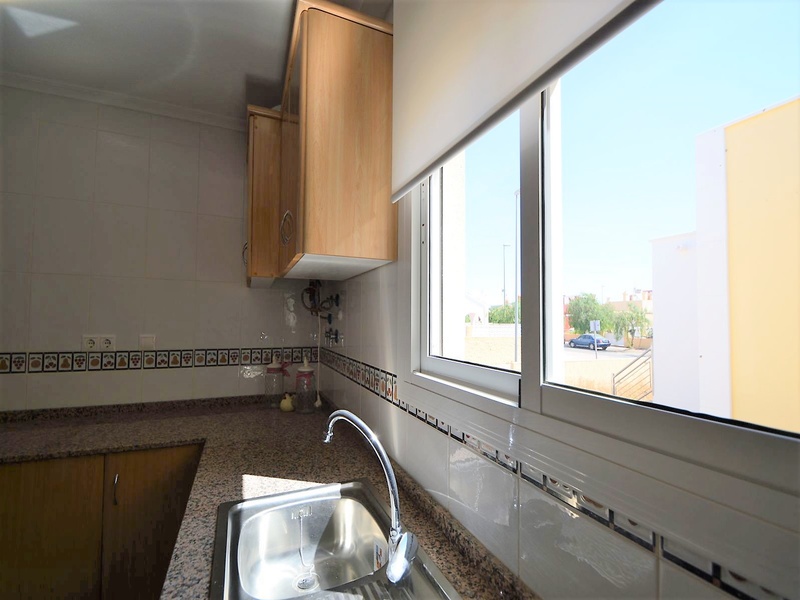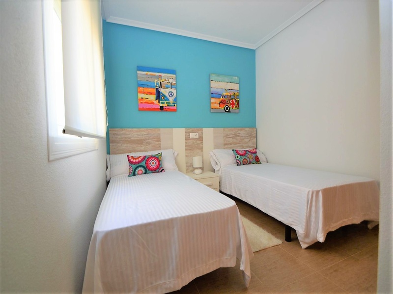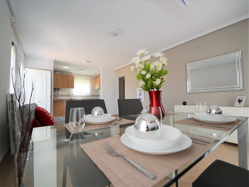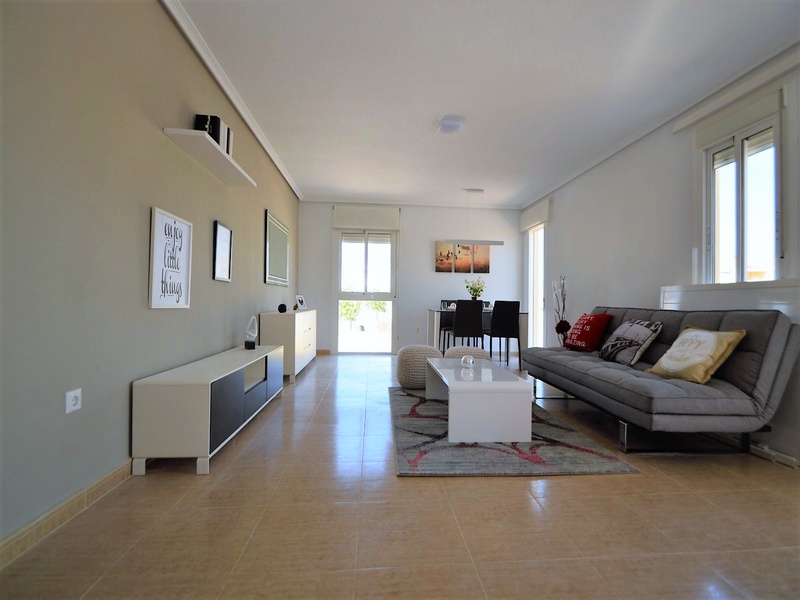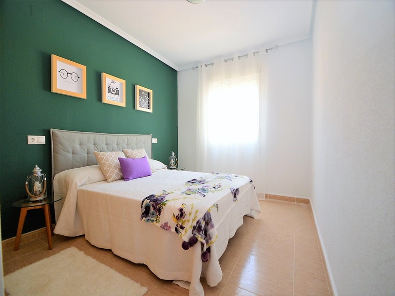 2-bedroom semi-detached villa with a modern design. It has 2 bedrooms, 1 bathroom, a kitchen and a living room. The built surface area of 68,76 square meters and a plot of 150,36 square meters of private gardens. The villa has built-in wardrobes, kitchen and bathrooms are fully equipped, aluminum windows, shutters, pre-installation of communications for air conditioning and solar panels. The property is located in an area with natural landscapes, adjacent to the golf courses. In close proximity to all the amenities possible and magnificent beaches of Costa Calida and Costa Blanca.